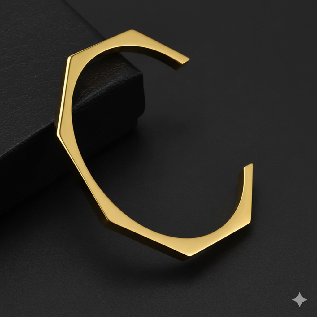 The Hexagon Cuff Bangle is a modern and unique piece that blends geometric design with elegant style. ✨